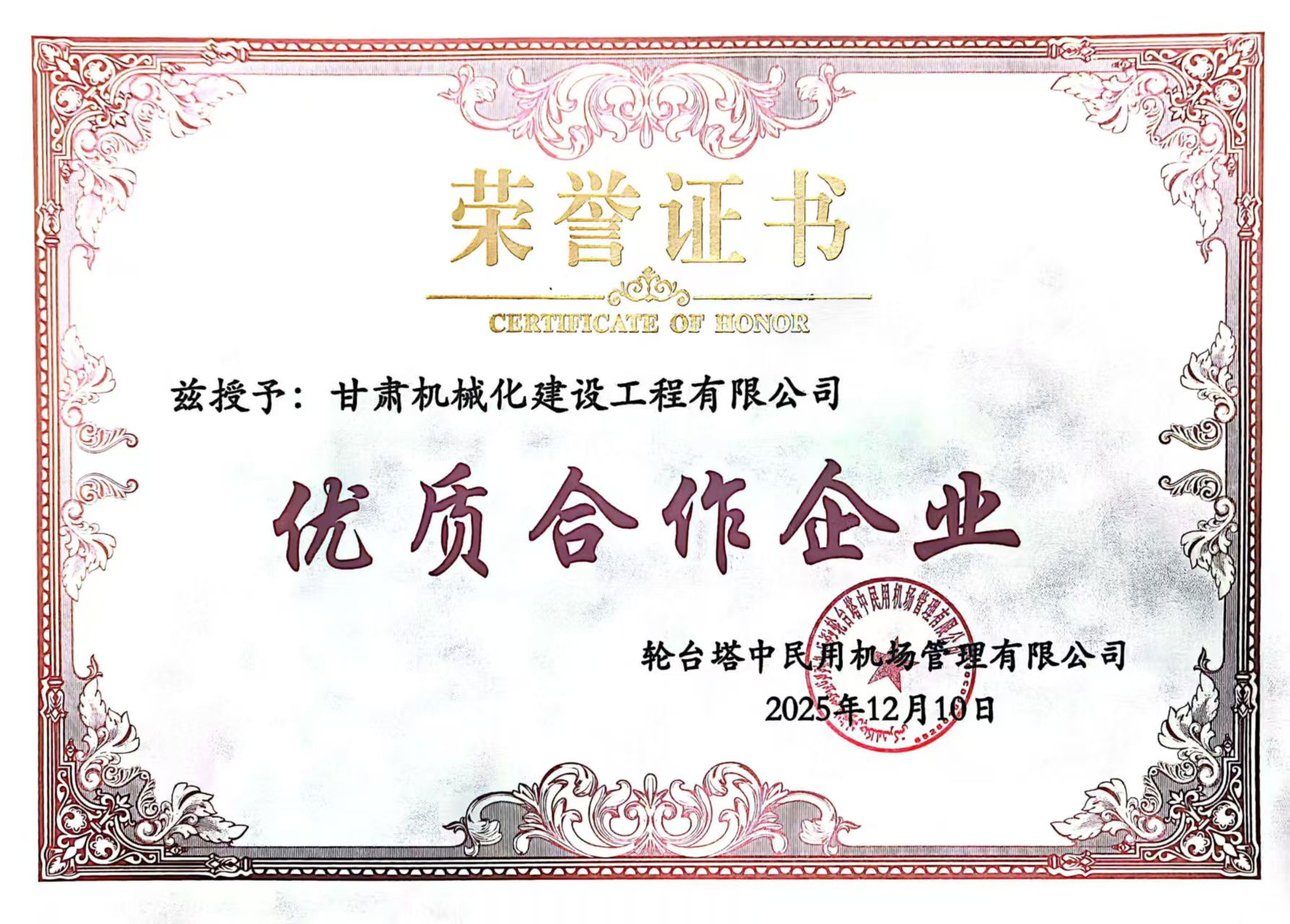 近日,新疆輪臺機(jī)場項(xiàng)目業(yè)主單位正式發(fā)布表彰決定,對項(xiàng)目建設(shè)期間履約盡責(zé)、實(shí)績突出的合作方及個(gè)人予以通報(bào)嘉獎(jiǎng),我司憑借扎實(shí)的工程履約能力與優(yōu)質(zhì)服務(wù)獲評“優(yōu)質(zhì)合作企業(yè)”,項(xiàng)目負(fù)責(zé)人同步斬獲“優(yōu)秀項(xiàng)目經(jīng)理”稱號,實(shí)現(xiàn)集體與個(gè)人榮譽(yù)雙豐收,彰顯業(yè)主單位對我司項(xiàng)目建設(shè)工作的高度認(rèn)可。