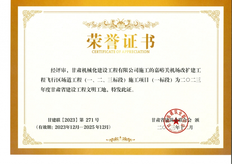 2023年度甘肅省建設(shè)工程文明工地 嘉峪關(guān)機場改擴(kuò)建工飛行區(qū)場道(一、二、三標(biāo)段) 施工項目 (一標(biāo)段)